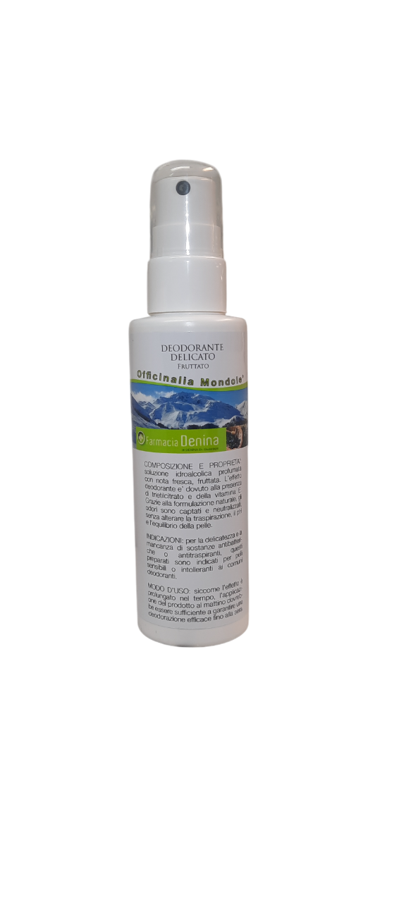 DEODORANTE DELICATO DONNA ha una piacevole fragranza fresca e fruttata Si tratta di un deodorante delicato, grazie alla formulazione naturale gli odori sono quindi captati e neutralizzati, senza alterare la traspirazione, il pH e l’equilibrio della pelle.