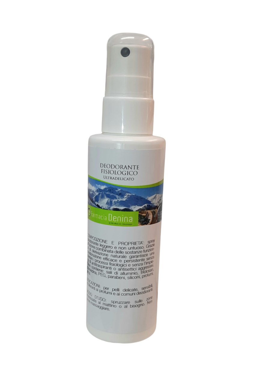 DEODORANTE FISIOLOGICO ULTRADELICATO è una soluzione idroalcolica delicata e ipoallergenica. Senza sali di alluminio, antitraspiranti, alcol e profumo, è adatto anche alle pelli più sensibili e intolleranti.