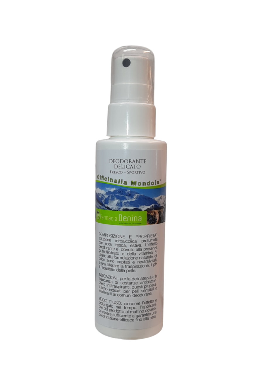 Per la delicatezza e la mancanza di sostanze antitraspiranti, il deodorante unisex delicato è adatto per pelli sensibili o intolleranti ai comuni deodoranti, si tratta infatti di una formulazione ipoallergenica, senza Sali di alluminio. L’azione deodorante perdura per tutto l’arco della giornata. La composizione del deodorante uomo delicato prevede: il trietil citrato che inibisce la formazione di cattivi odori, l’etilesilglicerina (ottossiglicerina) che è attiva come antimicrobico, ha inoltre proprietà emollienti e debolmente idratanti, infine, la vitamina E che ha azione antiossidante ed anche idratante, dal momento che limita la perdita d’acqua dall’epidermide. La formulazione è delicata e l’effetto del deodorante viene mantenuto a lungo.