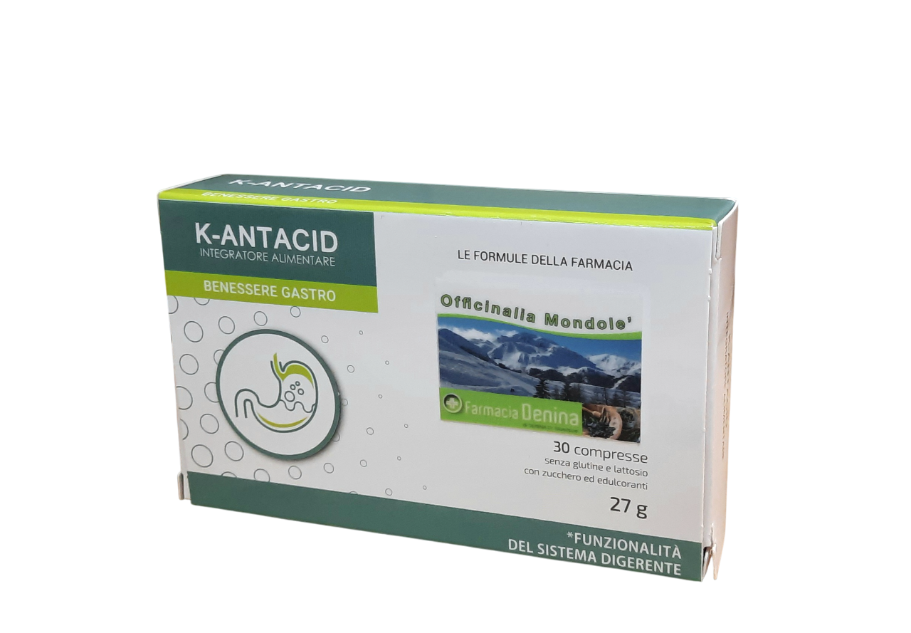 K-ANTIACID è un integratore alimentare contenente: estratto vegetale di liquirizia, sodio ialuronato, calcio e magnesio. È utile per sostenere la fisiologica funzionalità del sistema digerente.