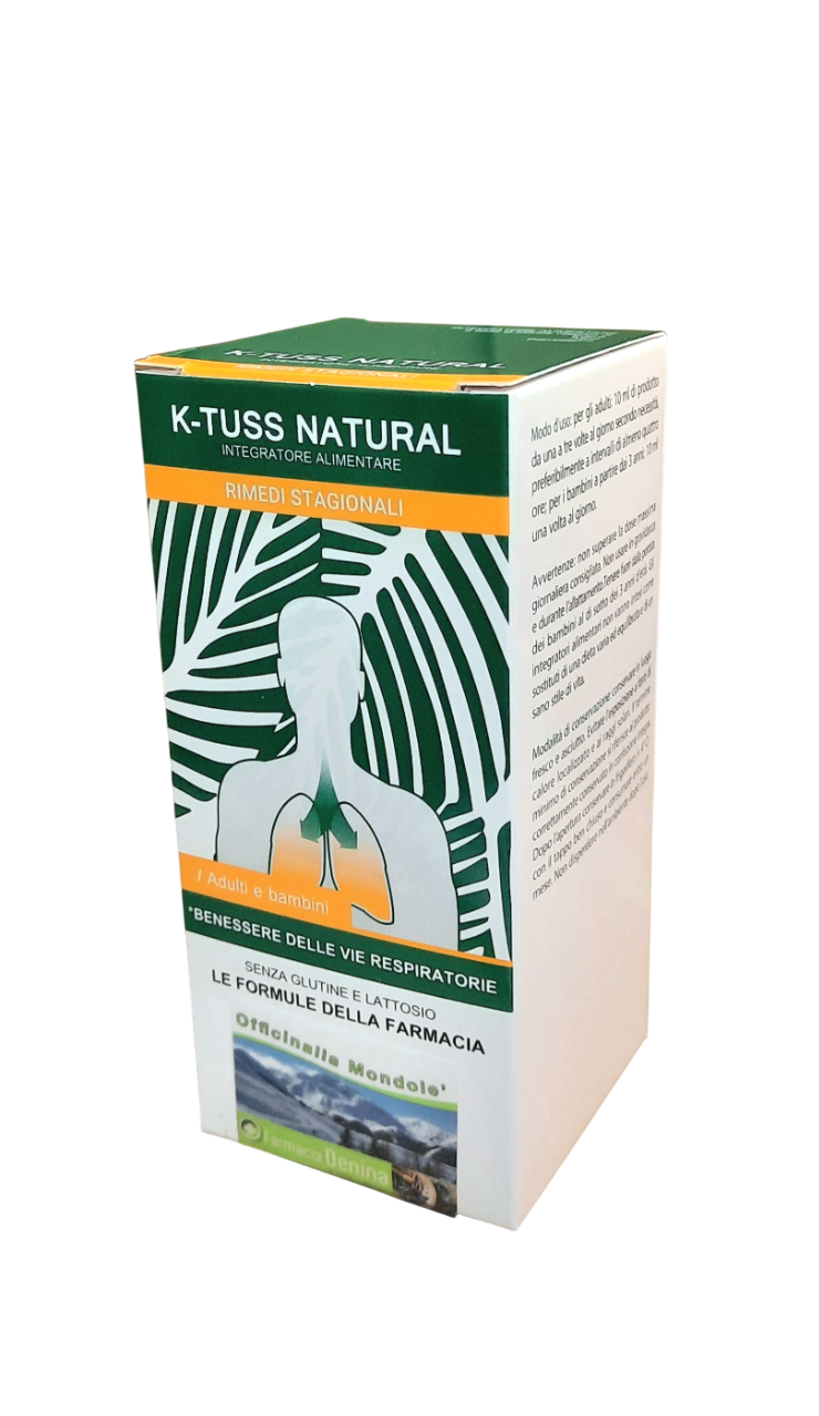 K-TUSS NATURAL è uno sciroppo per la tosse naturale a base di estratti vegetali utili per la fluidità delle secrezioni bronchiali (Edera), per la funzionalità delle mucose dell’apparato respiratorio (Altea, Piantaggine) e per la funzionalità delle prime vie respiratorie. Questo sciroppo per la tosse possiede, inoltre, proprietà emollienti e lenitive sulla mucosa orofaringea e favorisce il normale tono della voce, per adulti e bambini sopra i 3 anni di età.